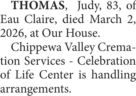 Obituary in Eau Claire, Wisconsin