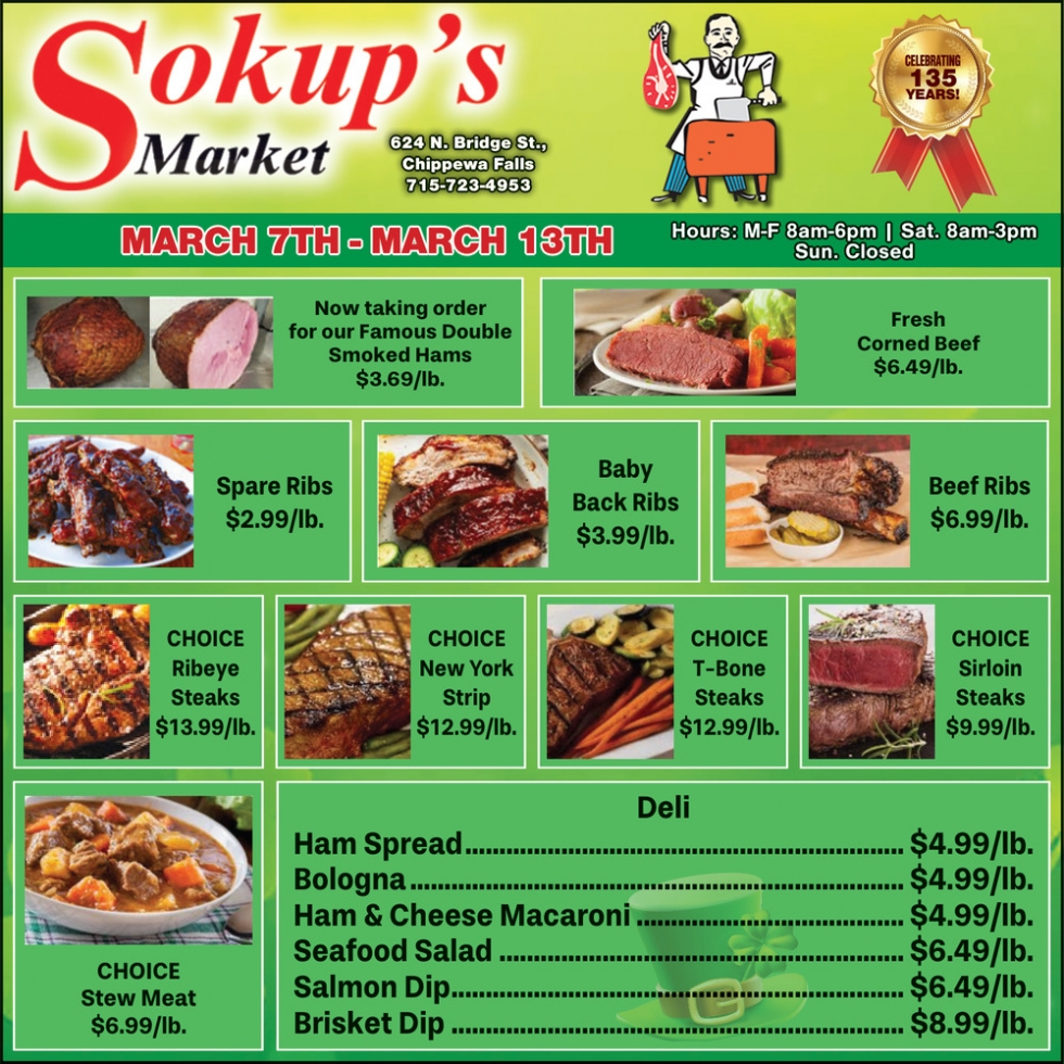 Ads for Sokup's Market in Chippewa Falls, WI