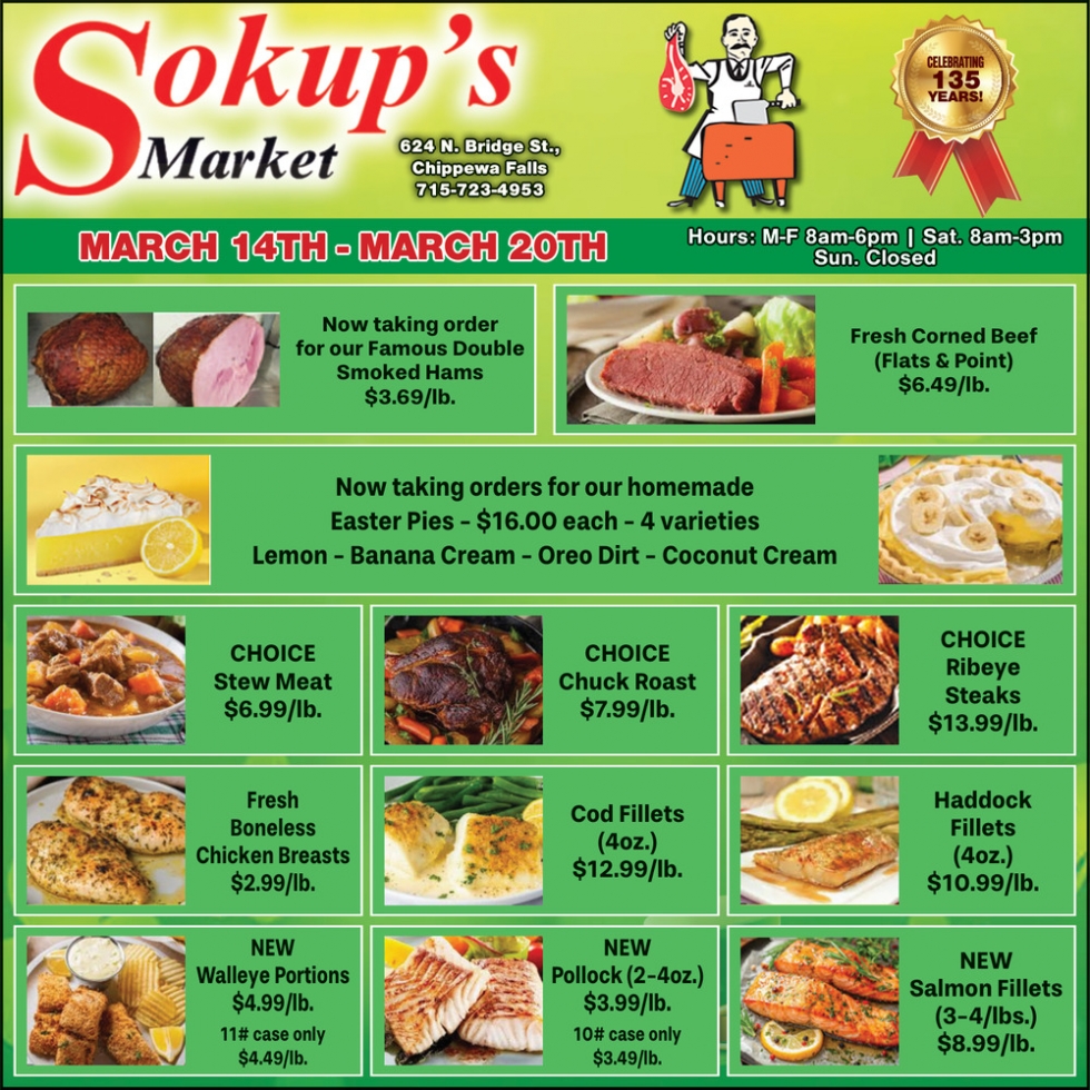 Ads for Sokup's Market in Chippewa Falls, WI