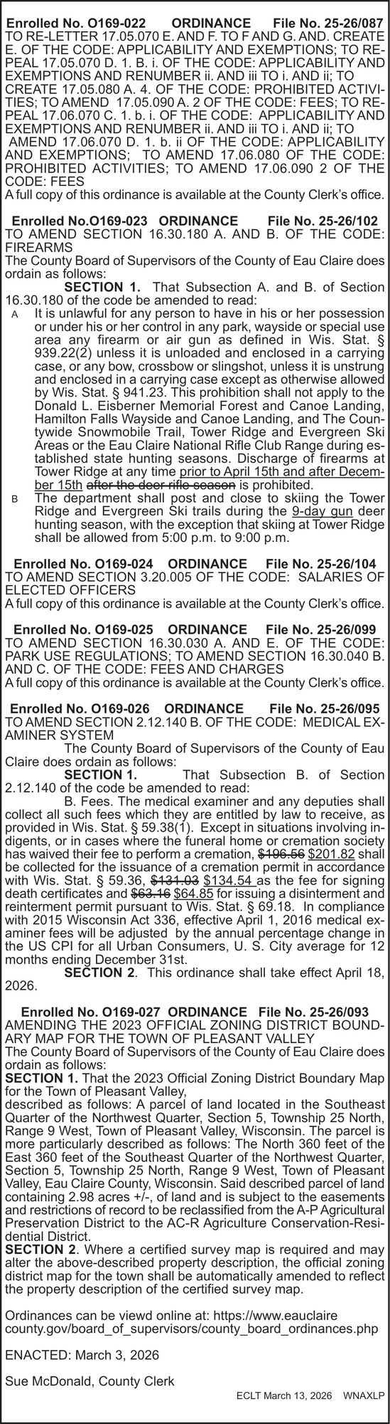 Mar 13, 2026. Eau Claire County Government Ads from Leader-Telegram