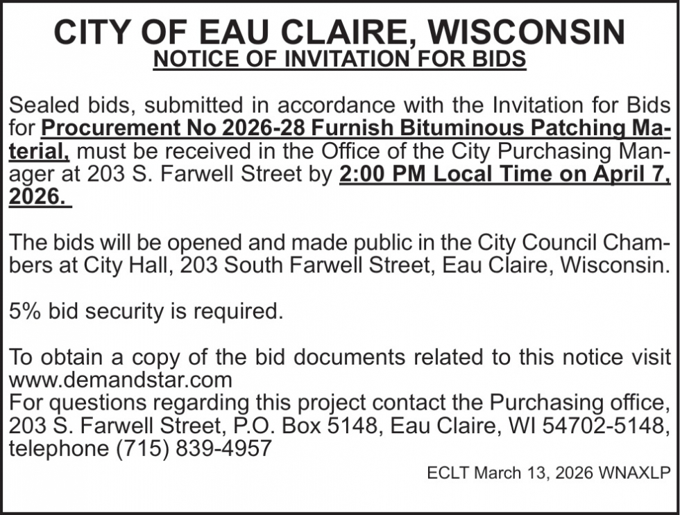 Mar 13, 2026. City of Eau Claire Notice Ads from Leader-Telegram