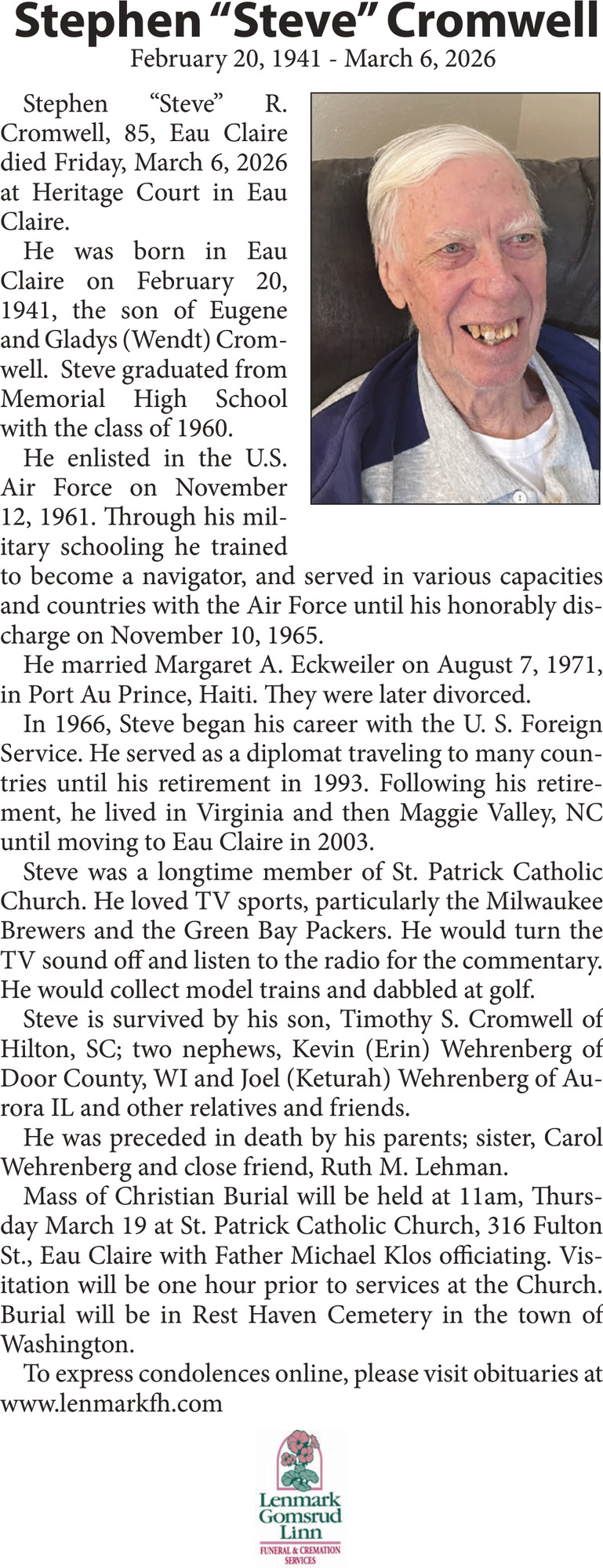 Obituary in Eau Claire, Wisconsin
