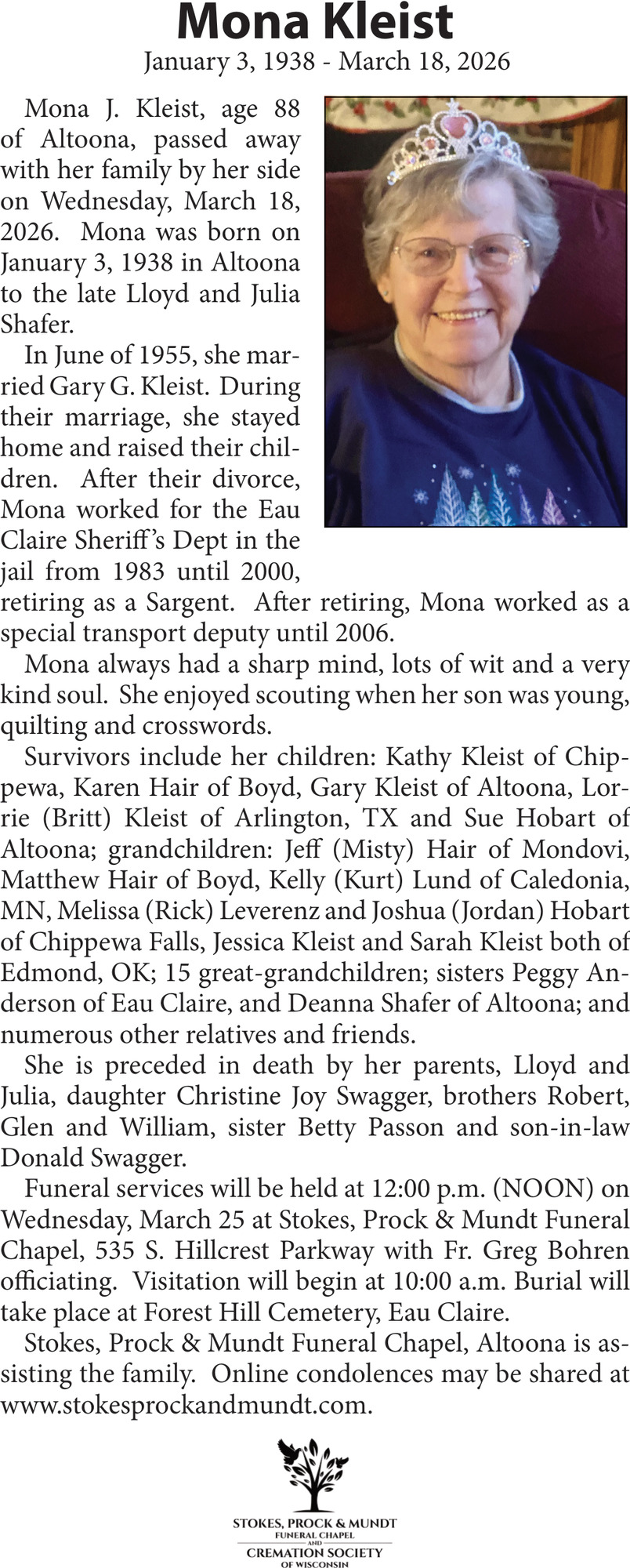 Mar 23, 2026. Obituaries Obituaries Ads from Leader-Telegram