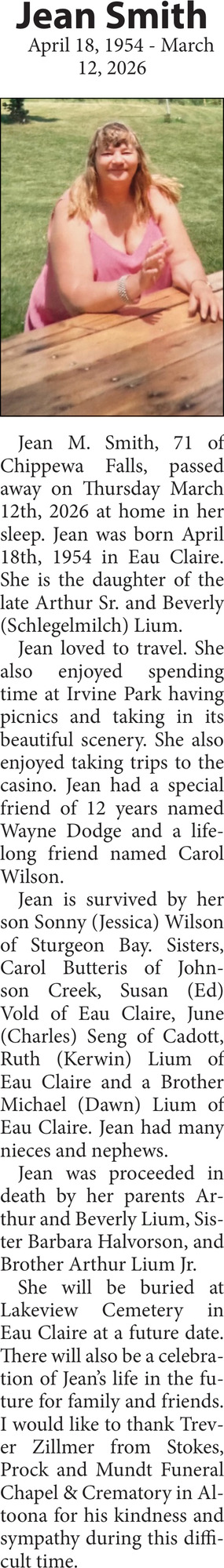 Obituary in Eau Claire, Wisconsin