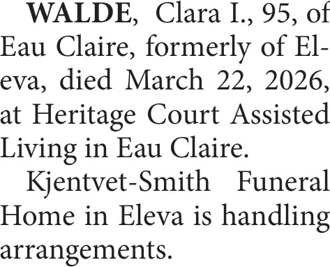 Obituary in Eau Claire, Wisconsin