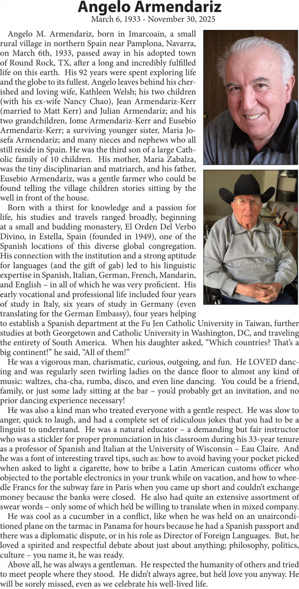 Obituary in Eau Claire, Wisconsin