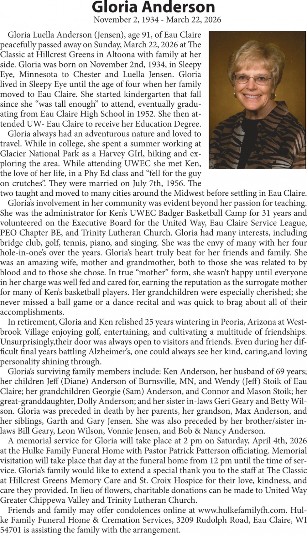 Mar 27, 2026. Obituaries Obituaries Ads from Leader-Telegram