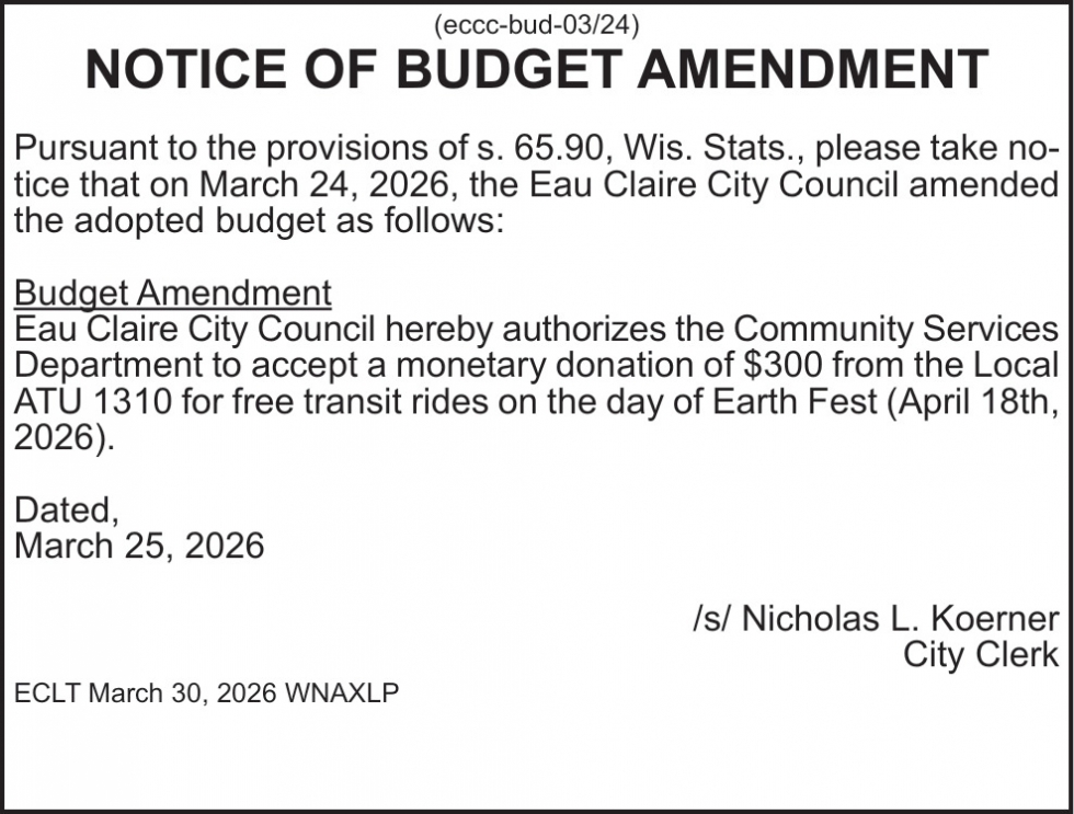 Mar 30, 2026. City of Eau Claire Notice Ads from Leader-Telegram