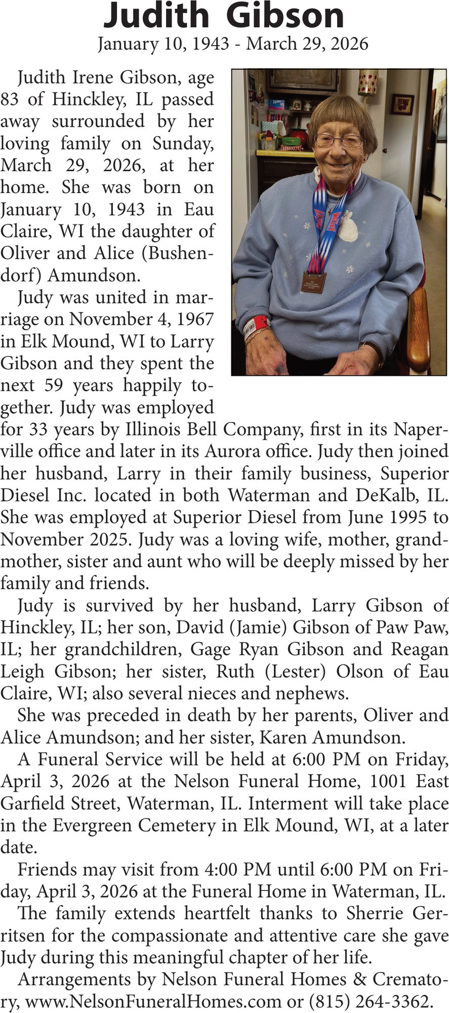 Obituary in Eau Claire, Wisconsin