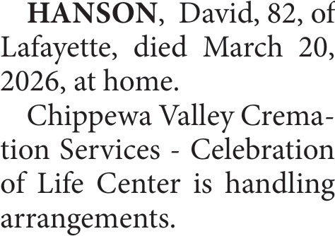 Mar 31, 2026. Obituaries Obituaries Ads from Leader-Telegram