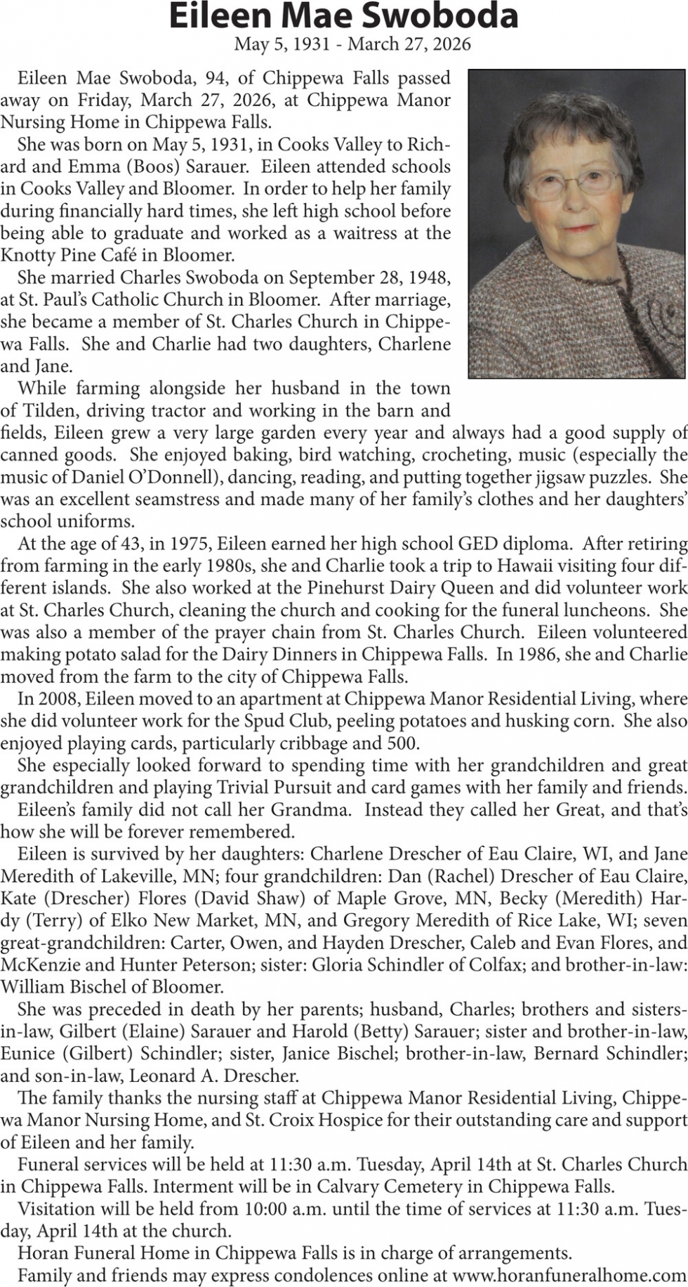 Apr 01, 2026. Obituaries Obituaries Ads from Leader-Telegram