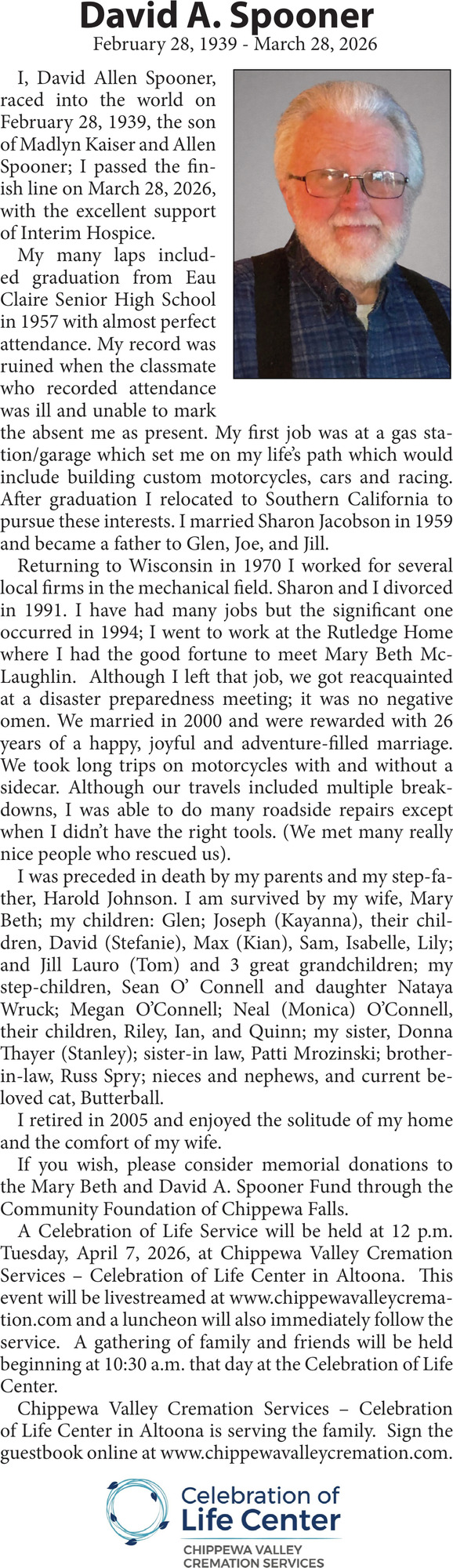 Apr 02, 2026. Obituaries Obituaries Ads from Leader-Telegram