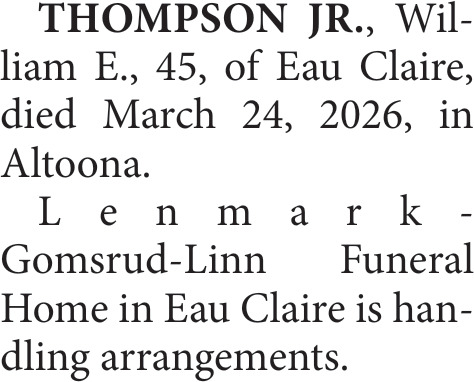 Obituary in Eau Claire, Wisconsin