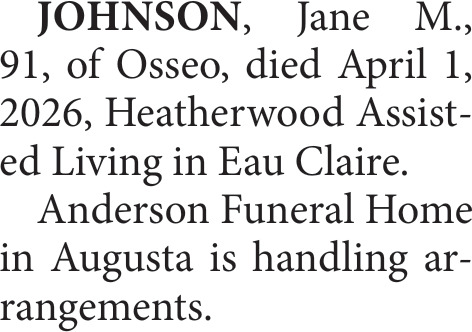 Obituary in Eau Claire, Wisconsin