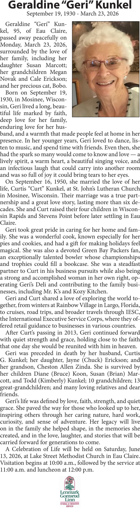 Obituary in Eau Claire, Wisconsin
