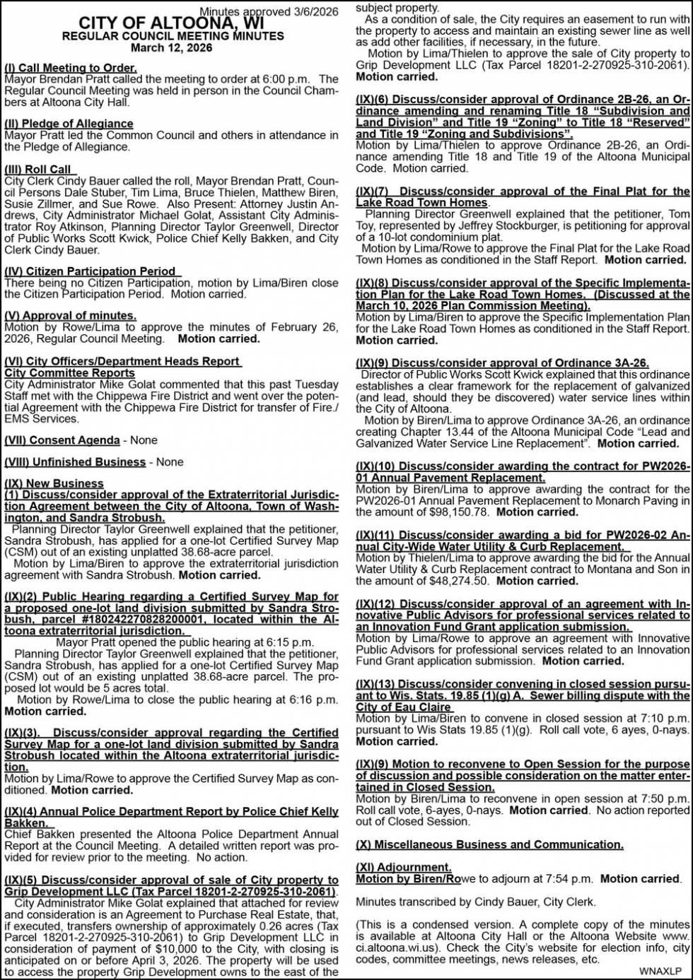 Apr 06, 2026. The City of Altoona Notice Ads from Leader-Telegram