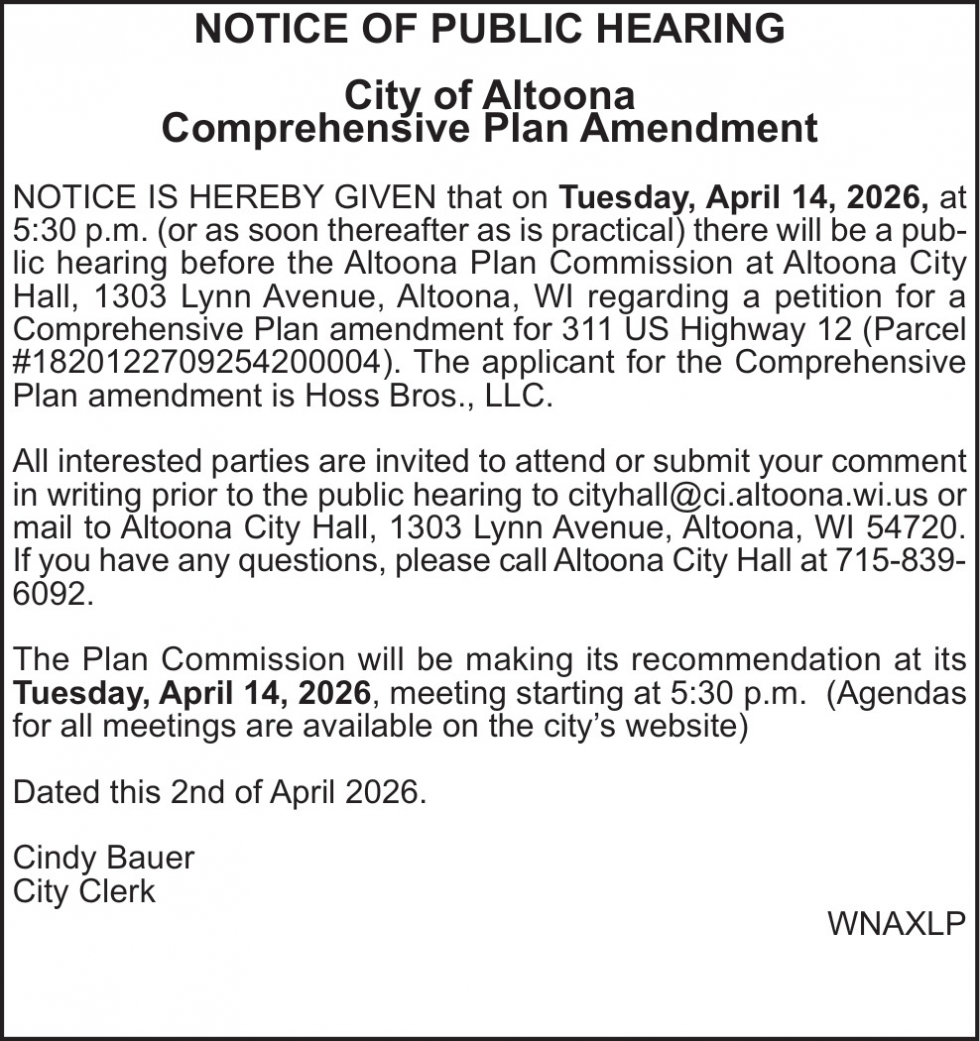 • Public Notices in Altoona, WI