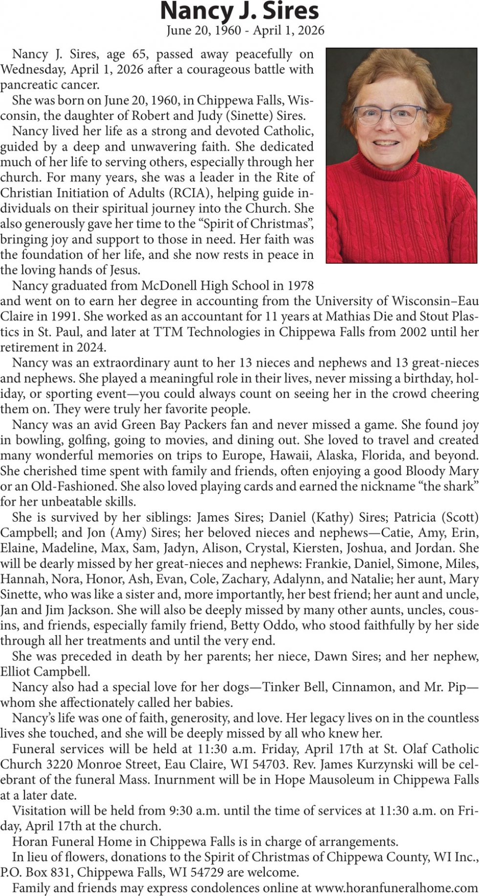Obituary in Eau Claire, Wisconsin