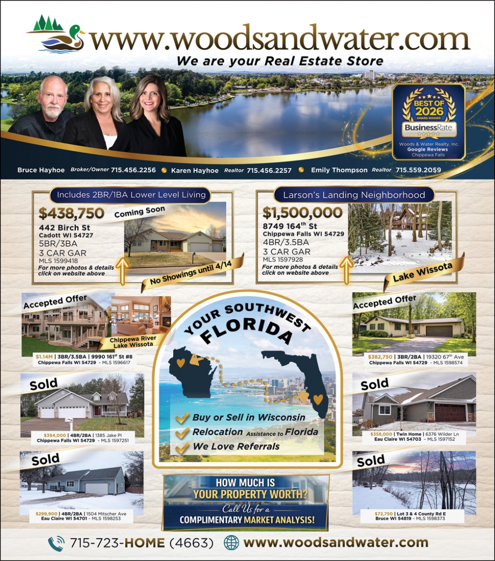 Apr 08, 2026. Woods & Water Realty Inc. Real Estate Ads from Leader-Telegram
