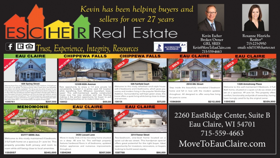 Ads for Escher Real Estate in Eau Claire, Wisconsin