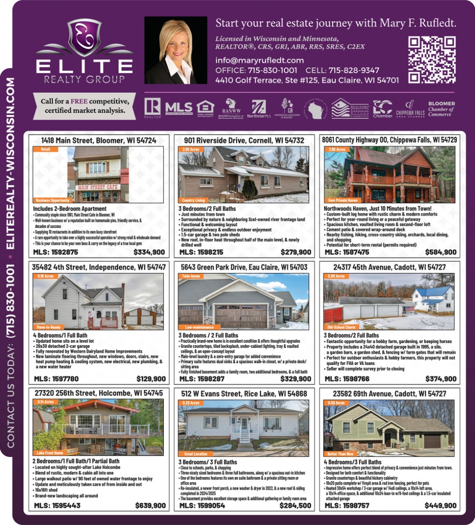 Apr 08, 2026. Mary F. Rufledt - Elite Realty Group Real Estate Ads from Leader-Telegram