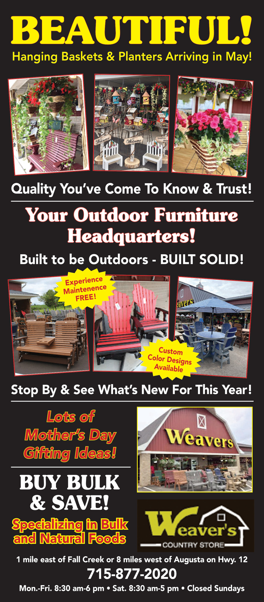 Ads for Weaver's Country Store in Fall Creek, WI