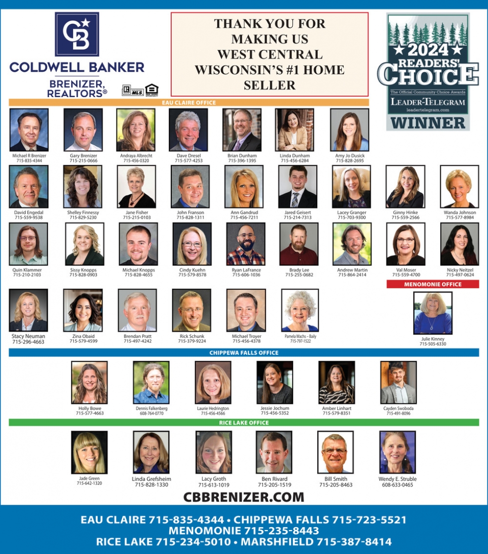 Apr 08, 2026. Coldwell Banker Brenizer Realtors Real Estate Ads from Leader-Telegram