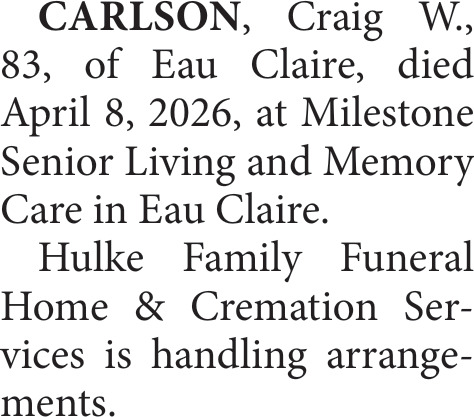 Obituary in Eau Claire, Wisconsin