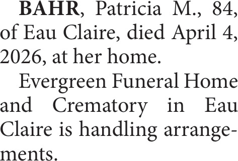 Obituary in Eau Claire, Wisconsin