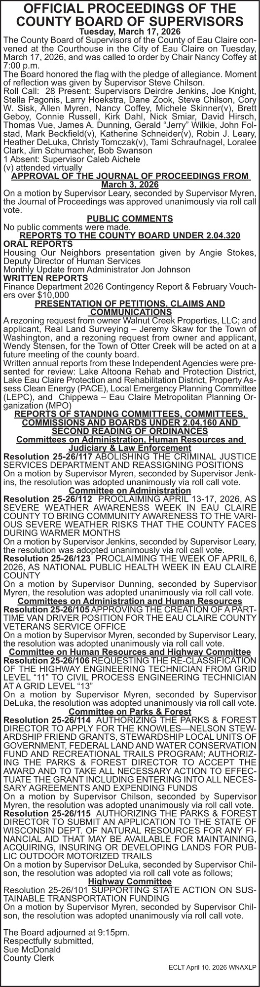 Apr 10, 2026. Eau Claire County Government Ads from Leader-Telegram
