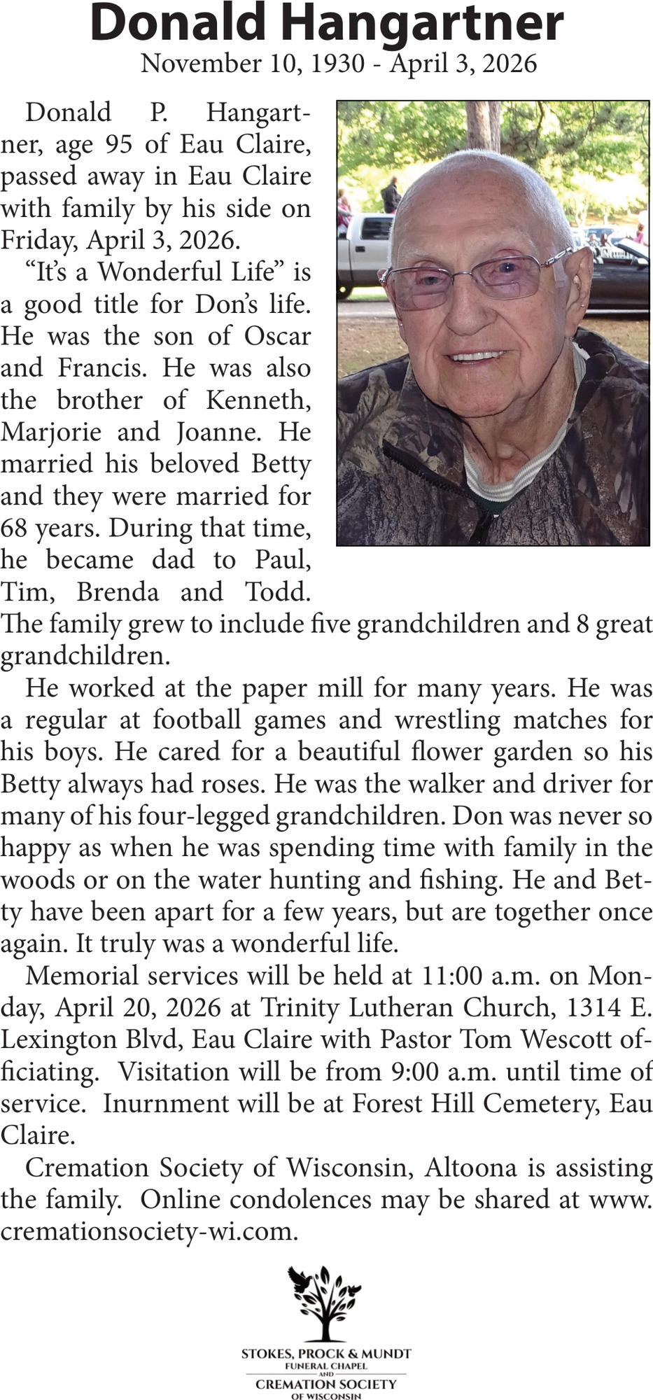 Apr 10, 2026. Obituaries Obituaries Ads from Leader-Telegram
