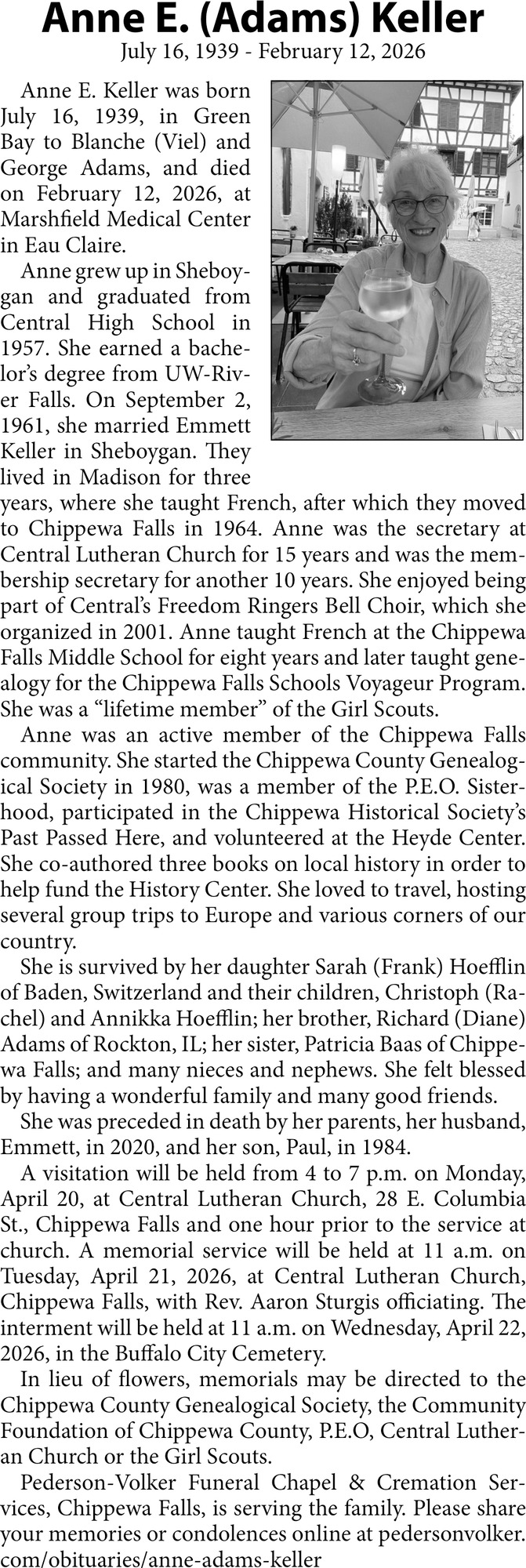 Apr 13, 2026. Obituaries Obituaries Ads from Leader-Telegram