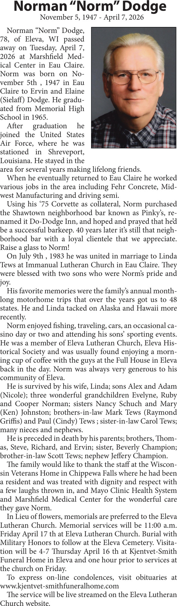 Apr 13, 2026. Obituaries Obituaries Ads from Leader-Telegram