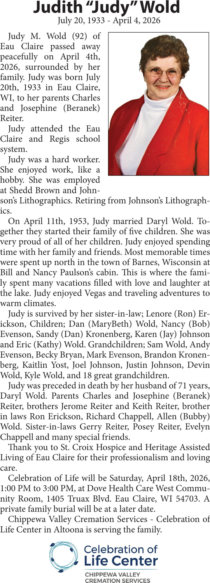 Apr 13, 2026. Obituaries Obituaries Ads from Leader-Telegram