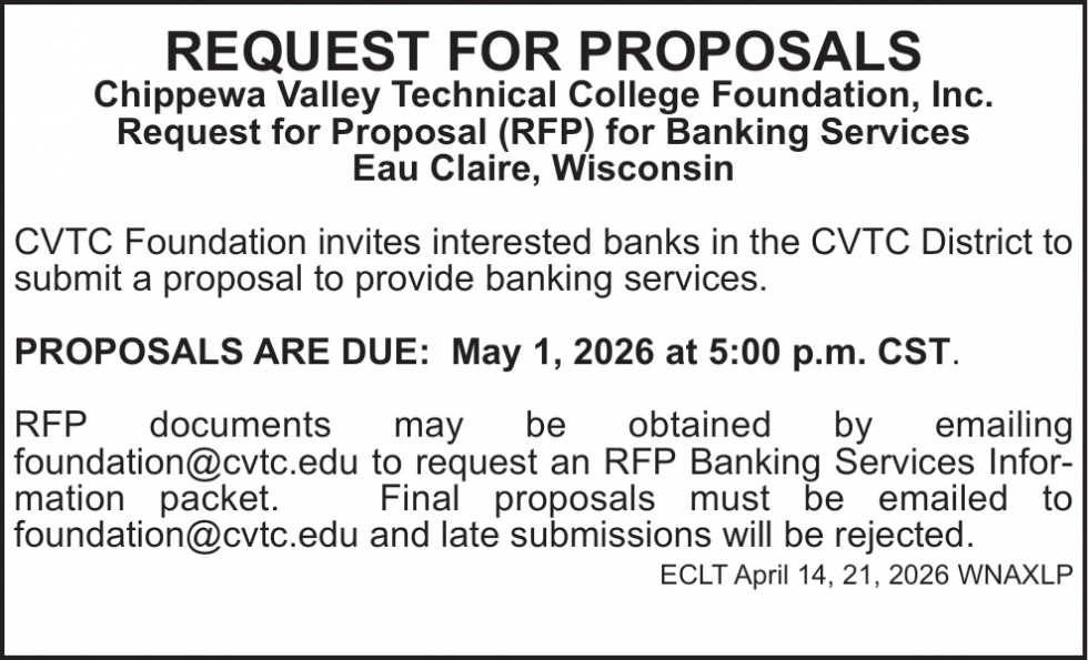Apr 14, 2026. Chippewa Valley Technical College Notice Ads from Leader-Telegram