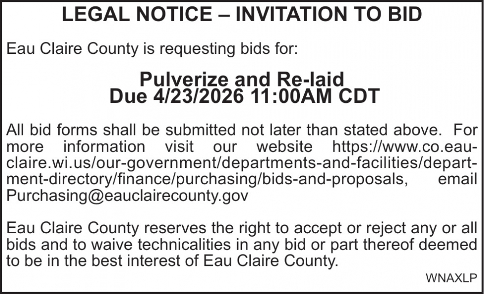 Apr 14, 2026. Eau Claire County Government Ads from Leader-Telegram