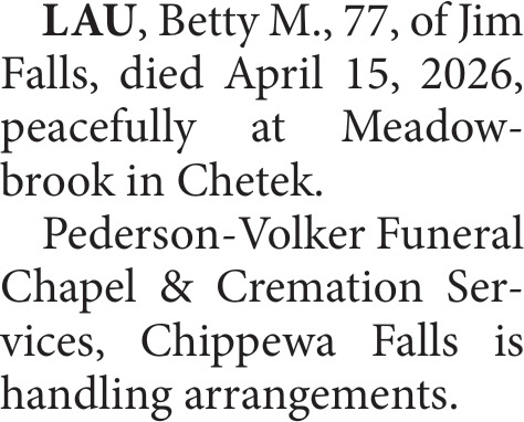 Obituary in Eau Claire, Wisconsin
