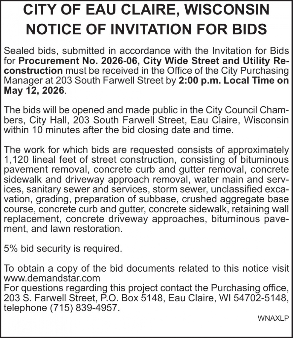Apr 17, 2026. City of Eau Claire Notice Ads from Leader-Telegram
