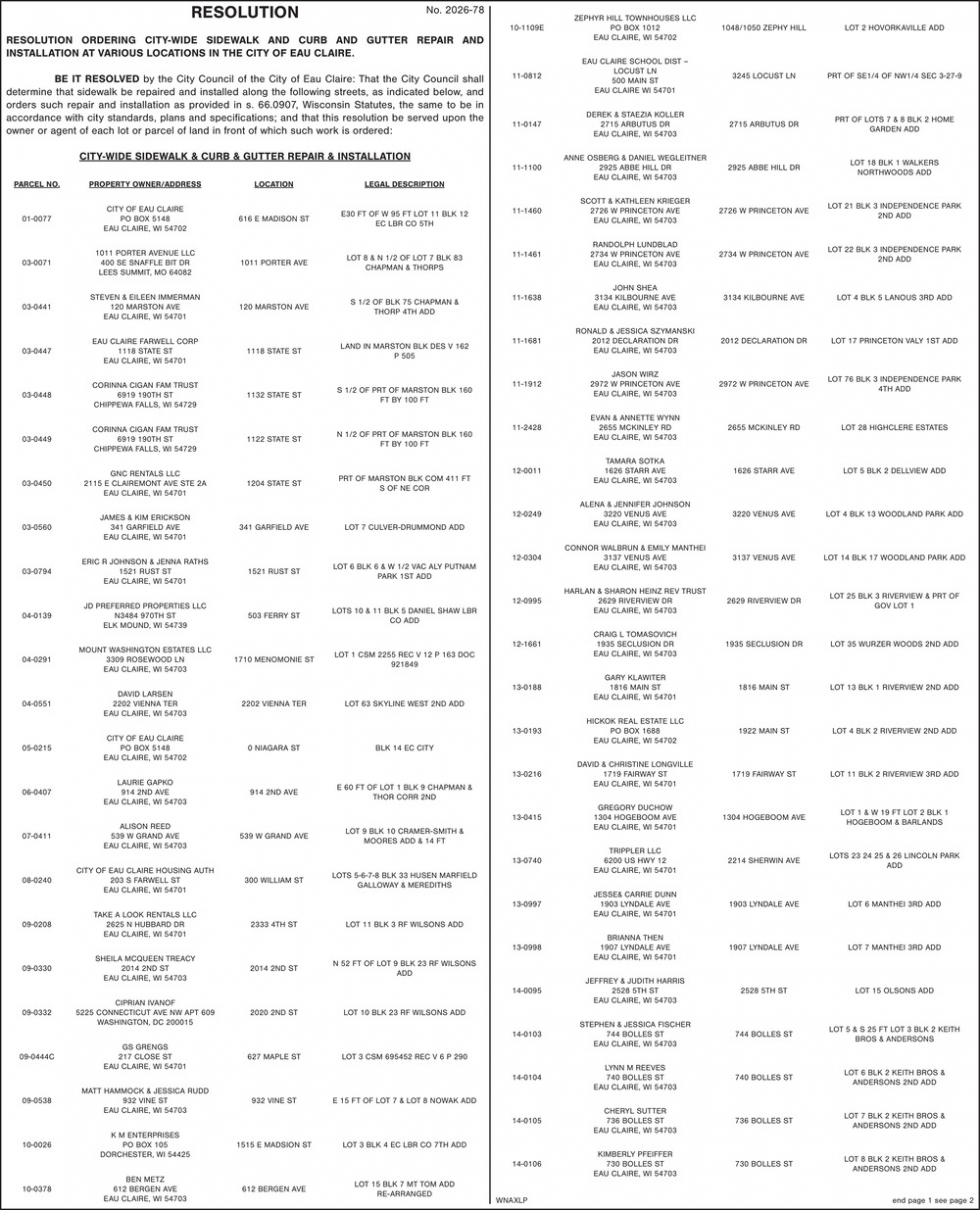 Apr 20, 2026. City of Eau Claire Notice Ads from Leader-Telegram