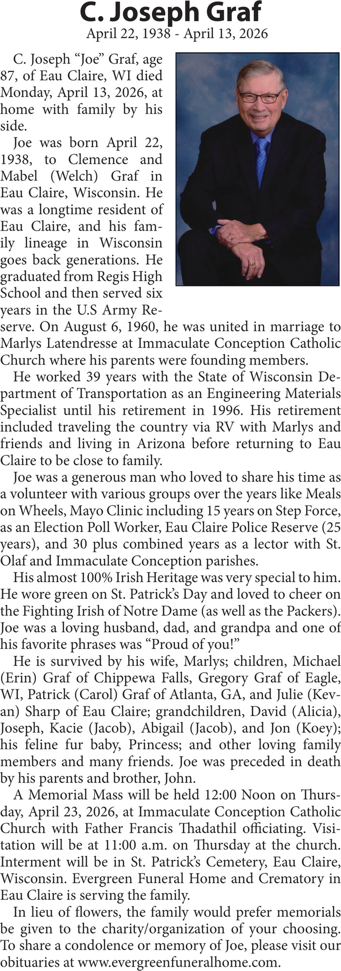 Apr 20, 2026. Obituaries Obituaries Ads from Leader-Telegram
