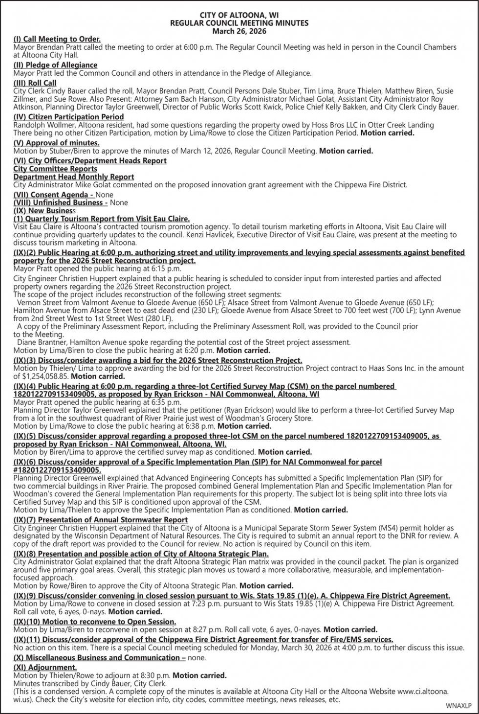 Apr 21, 2026. The City of Altoona Notice Ads from Leader-Telegram