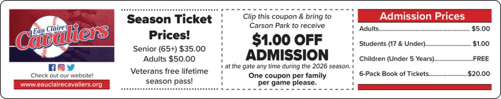 Apr 24, 2026. Eau Claire Cavaliers Sporting Events Ads from Leader-Telegram