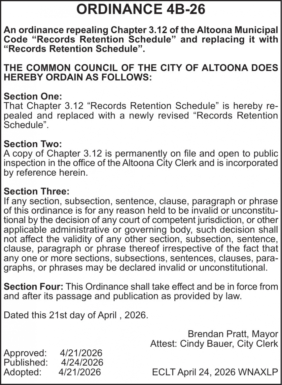 Apr 24, 2026. The City of Altoona Notice Ads from Leader-Telegram