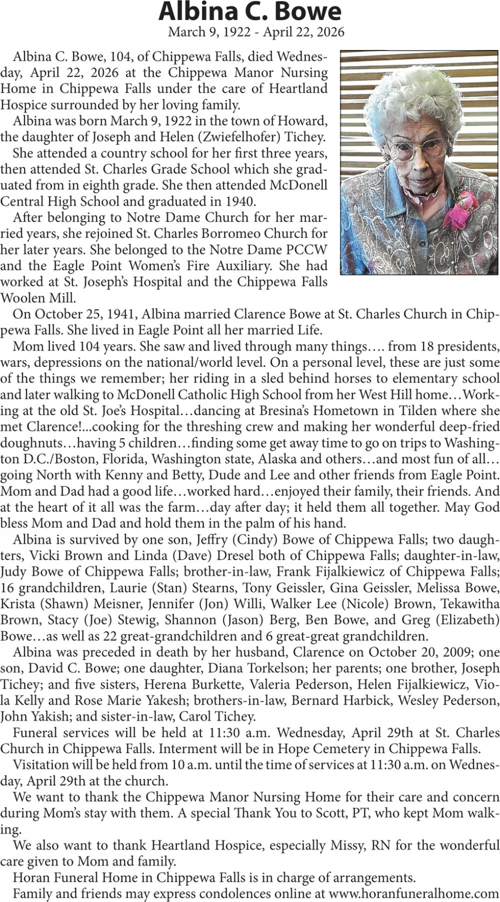 Apr 27, 2026. Obituaries Obituaries Ads from Leader-Telegram