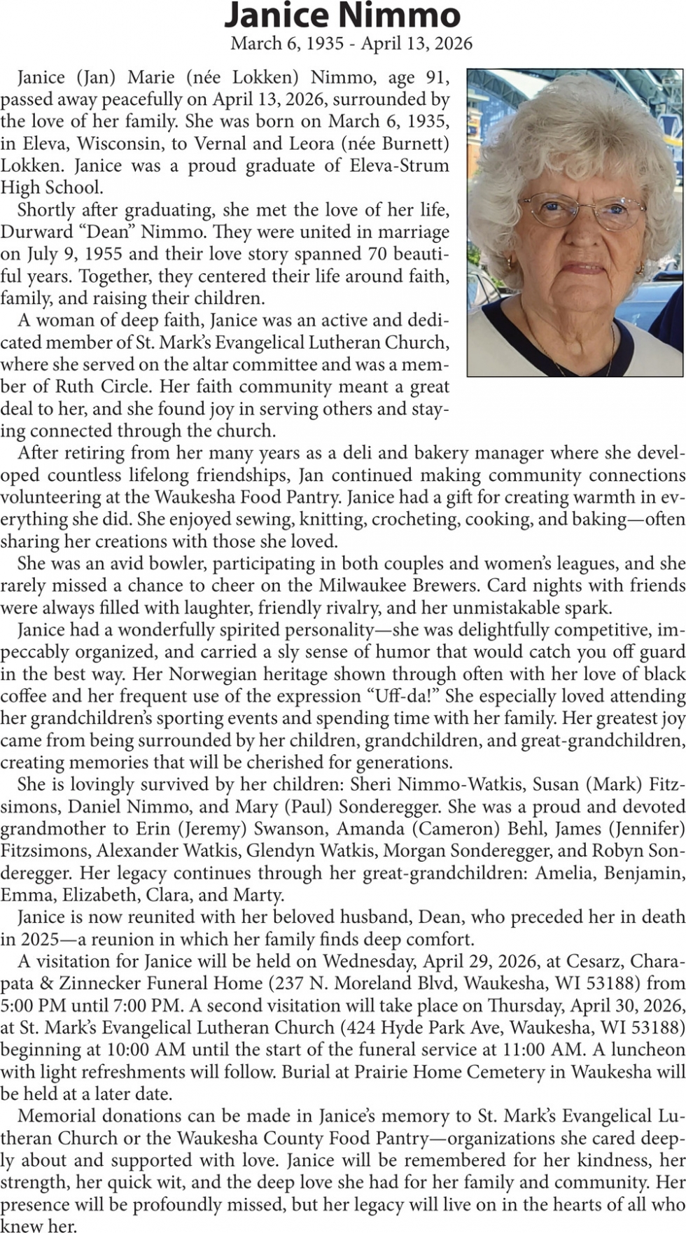 Apr 28, 2026. Obituaries Obituaries Ads from Leader-Telegram