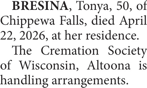 Obituary in Eau Claire, Wisconsin
