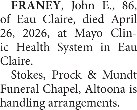 Obituary in Eau Claire, Wisconsin